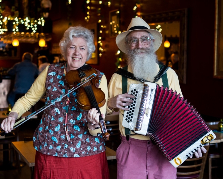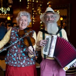Since then Jeanie and Ken have been singing, playing, researching and archiving the music they love, sticking to a simple unadorned line-up of diatonic accordions, fiddles, guitar, mandolin, banjo, harmonica and voices, spreading their knowledge of the rough-hewn musical expression of a continent in front of audiences all over the world, on concert stages, in schools, bars, folk clubs, community and old people’s centres.