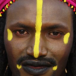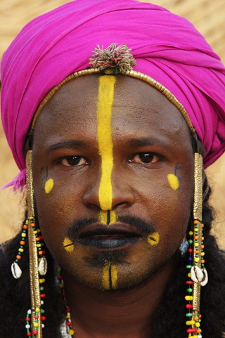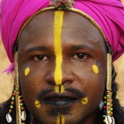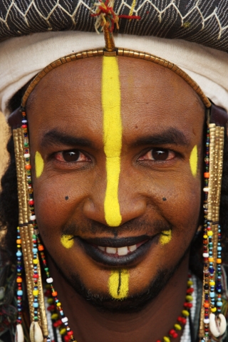 In these workshops the Wodaabe members will demonstrate their traditional Wodaabe chants and accompany their vocal music with the traditional calabasse (gourd) drums and a slow motion type of movement verging on dance and handclapping. They will also display their traditional long embroidered tunics, leather hose, turbans with ostrich feathers and the face paint of yellow spots and stripes used to enhance their features. The Tuareg members have always used a variety of stringed instruments, tende drums and vocal ululations to animate their songs and dances but since the 1970’s have used a guitar in a style called Ichumar – it will be explained that this style came out of their rebellion and exile in Libya.