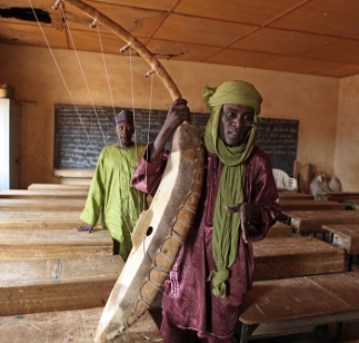 In 2002, Mamane Barka received a UNESCO scholarship to materialize his dream of reviving the tradition of the biram, the five-string harp. He travelled to Lake Chad in eastern Niger to meet the Boudouma, an ethnic group of nomadic fishermen, and their sacred instrument, the biram, which they believe is protected by the spirit of the lake, Kargila. True to its role as an integral part of the fishing tradition, the instrument resembles a boat.