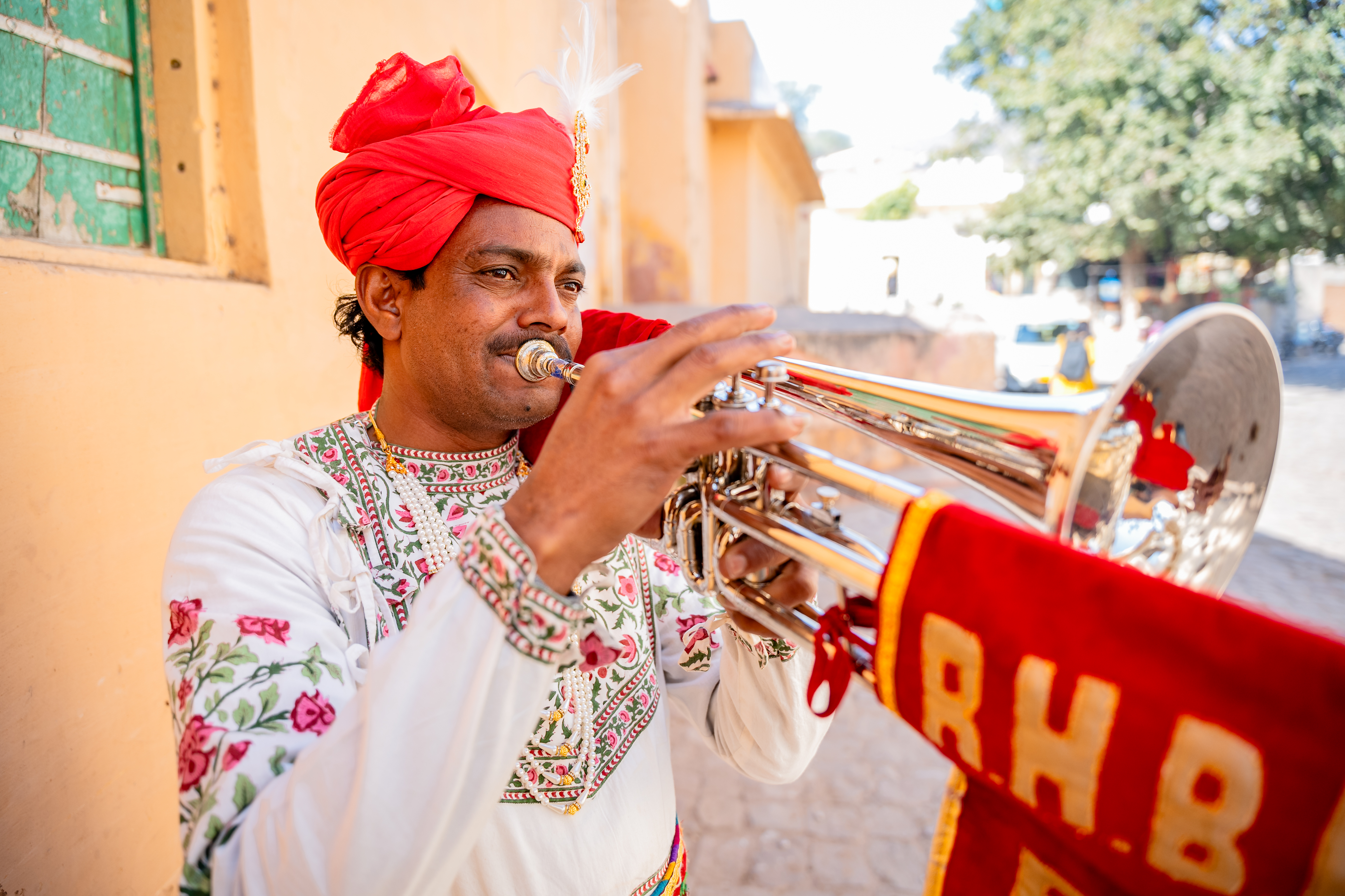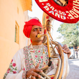 Extensive touring since 2005 has established them as the premier touring Rajasthani brass band for literally all events, from festivals and melas to parties and weddings. With a diverse repertoire spanning Rajasthani folk songs, Bollywood hits, spiritual qawwali, Bhangra beats. sci-fi and intergalactic funk and even some well loved pop songs, these vividly costumed artists cover the full spectrum of the evocative and joyous music that governs life in Rajasthan.
