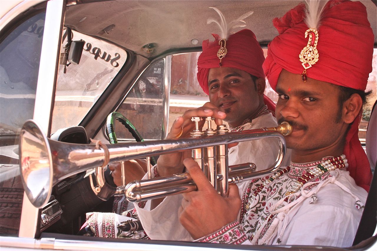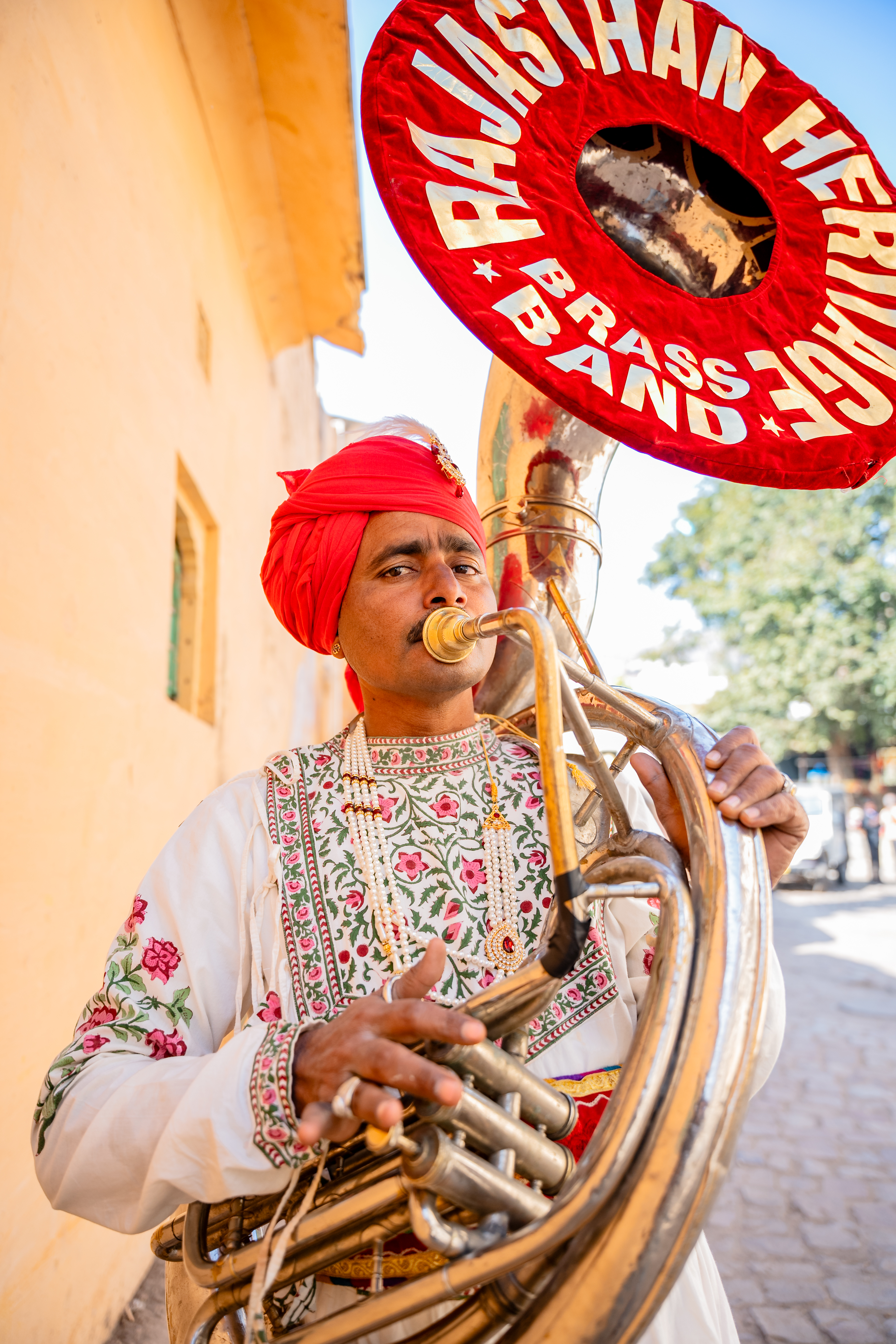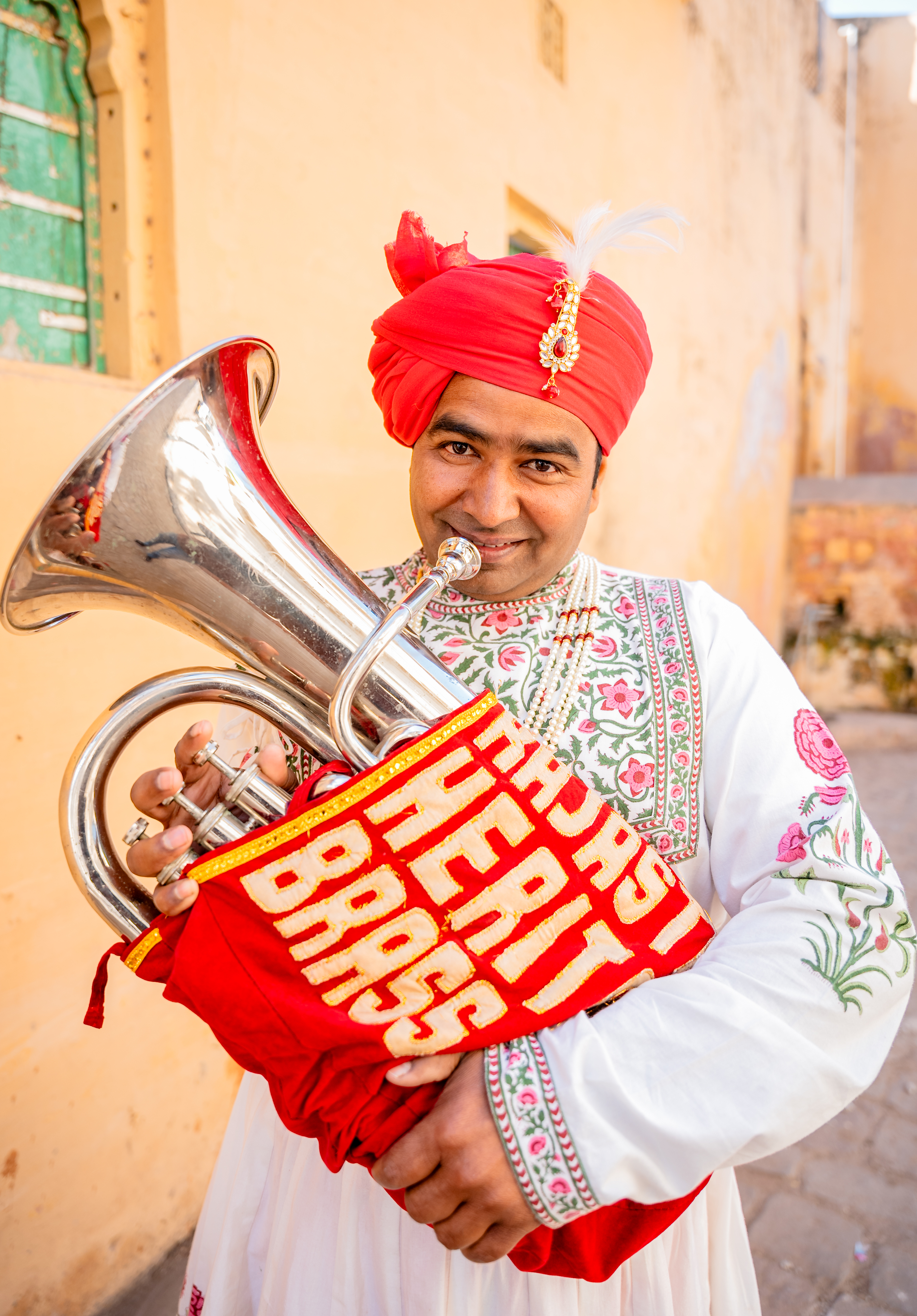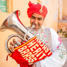 Highly talented musicians from Jaipur, Rajasthan’s renowned “Pink City”, the surrounding villages, make up the brass core of this rousing new ensemble on trumpet, trombone, euphoium and sousaphone, supplemented with clarinet, against an insistent background of percussion on side, bass and dhol drums.